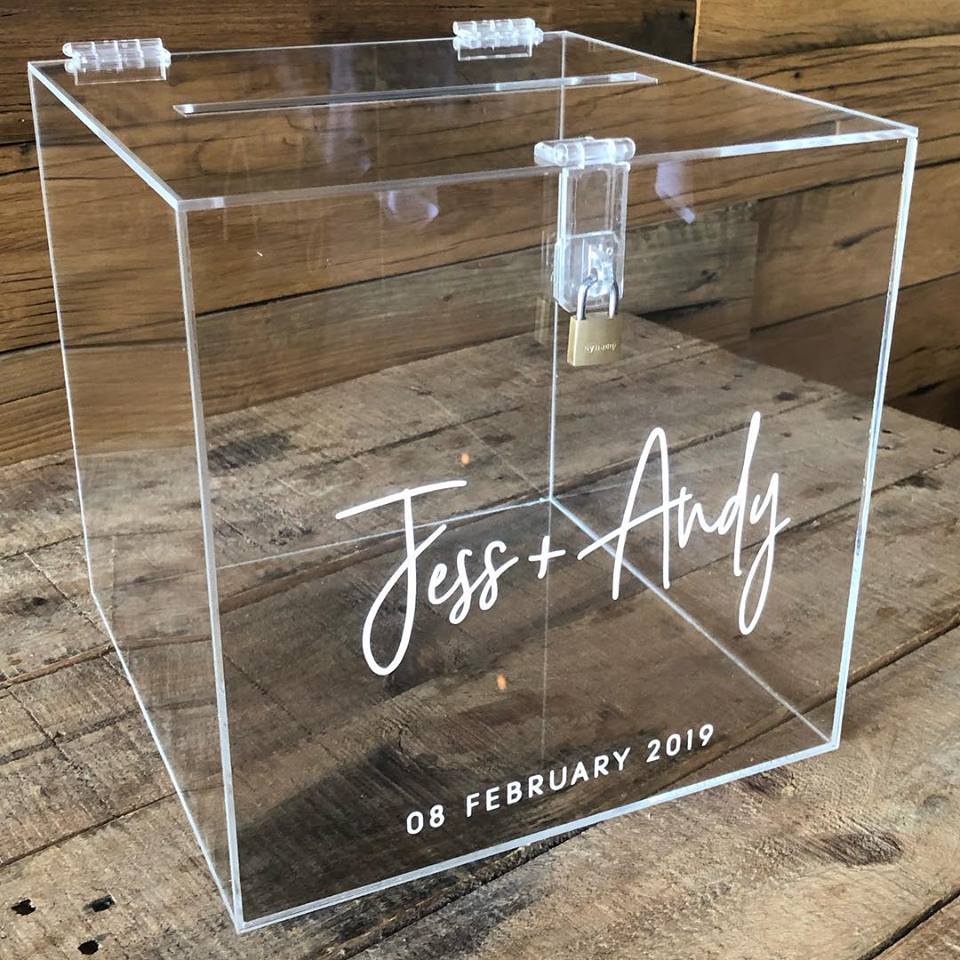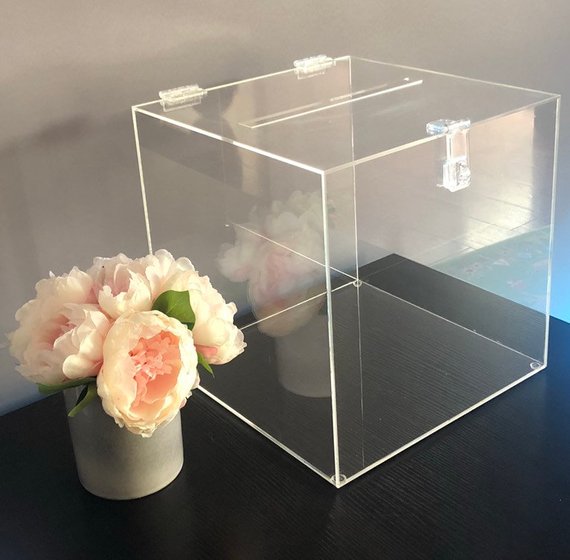 Large 30cm clear acrylic wishing well/ card box with card slot opening.