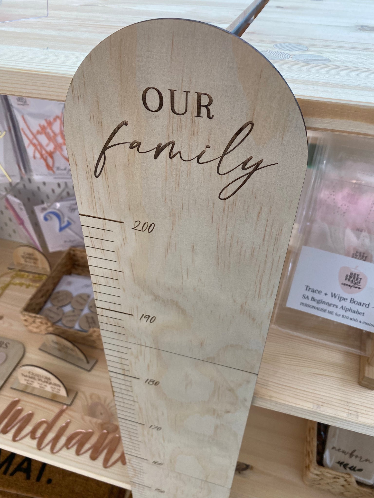 Checkout other designs and leave your personalisation details at checkout. Allow 2-3 weeks to receive your height chart once ordered.