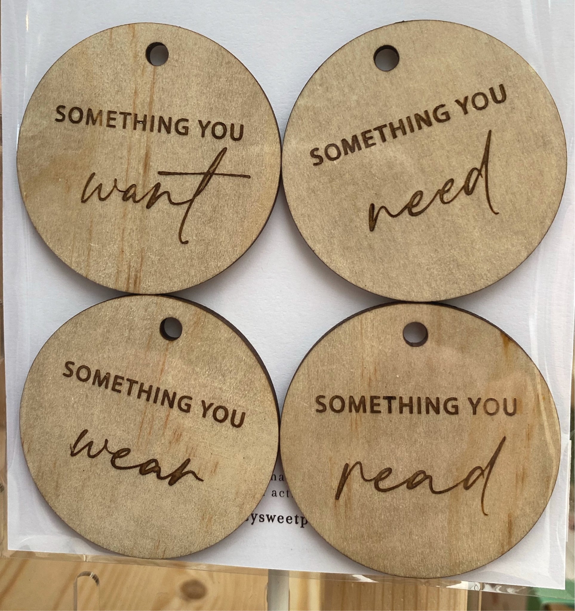 A set of four gift tags personalised with your child’s name, lovingly engraved and cut locally in SA.